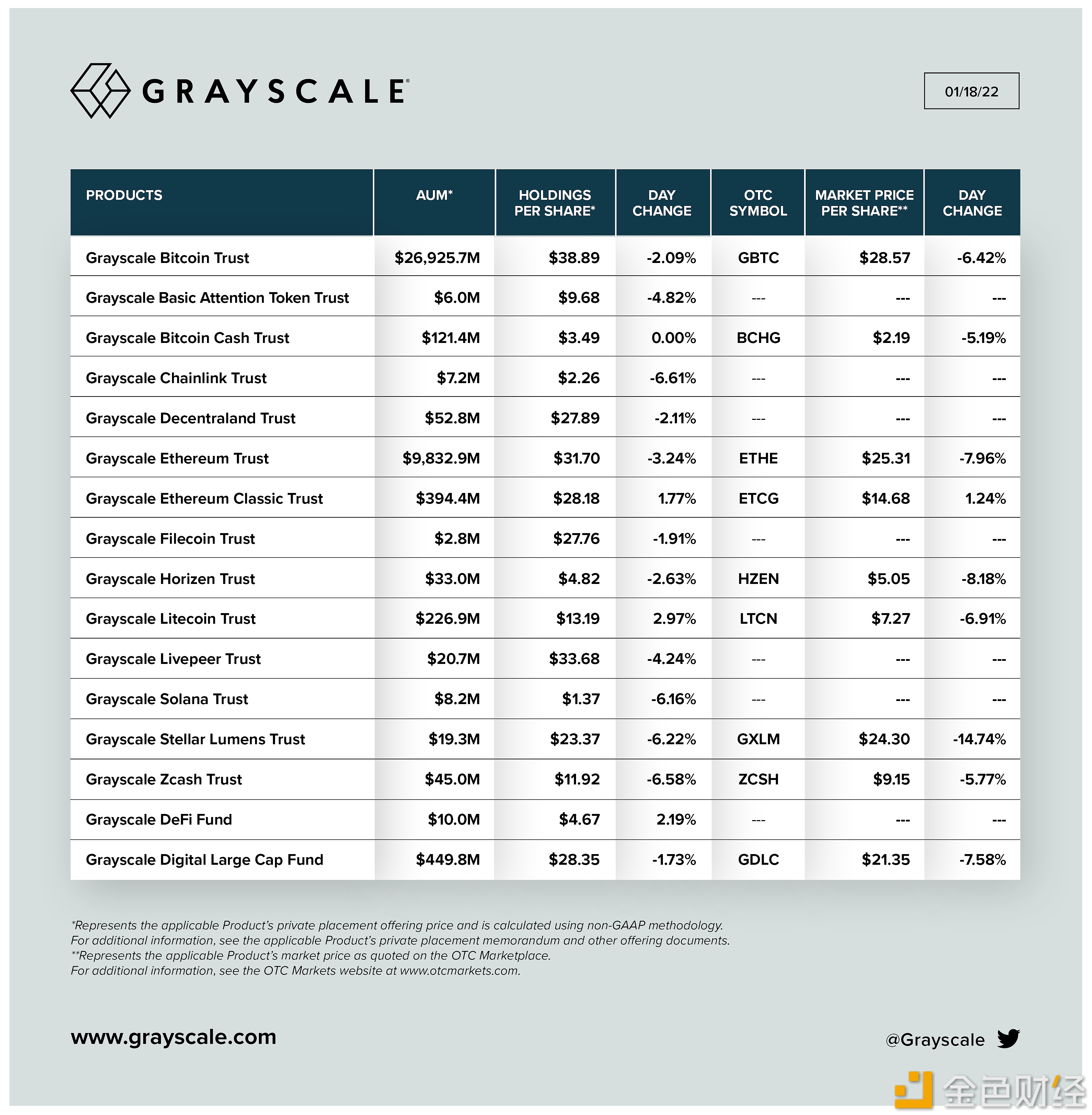 本站消息,据灰度官方推特消息,截至美东时间1月18日,灰度资产管理总规模达382亿美元。比特币信托基金(GBTC)交易价格为每份38.89美元,较前一日下跌2.09%;以太坊信托基金(ETHE)交易价格为每份31.70美元,较前一日下跌3.24%。